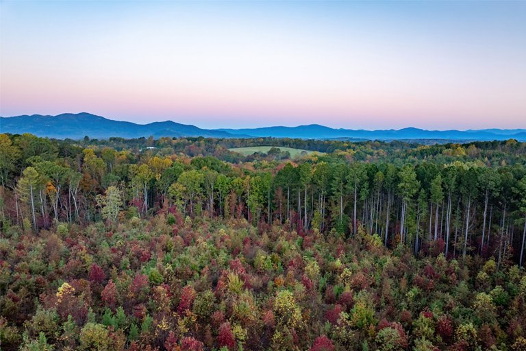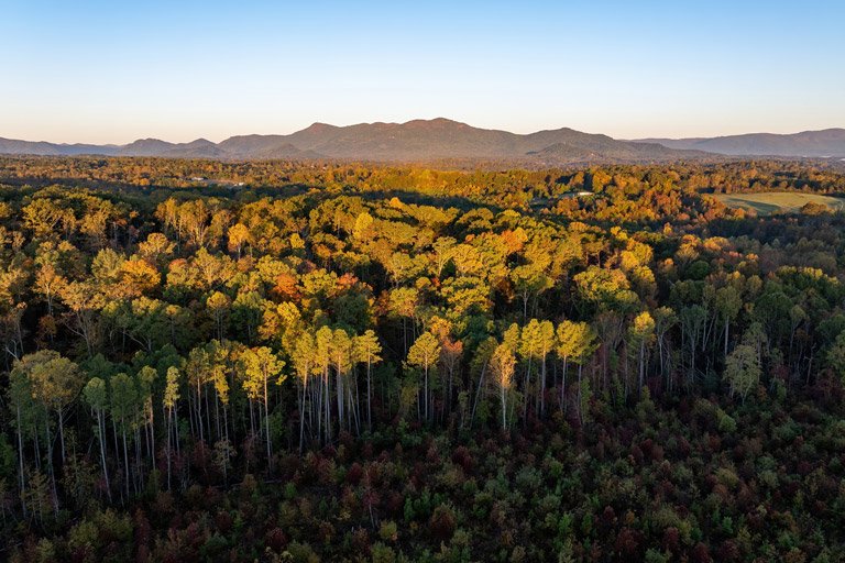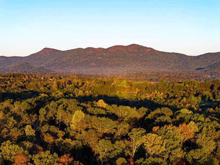 - East–west orientation showcasing elevated northern views of the Blue Ridge ridgeline